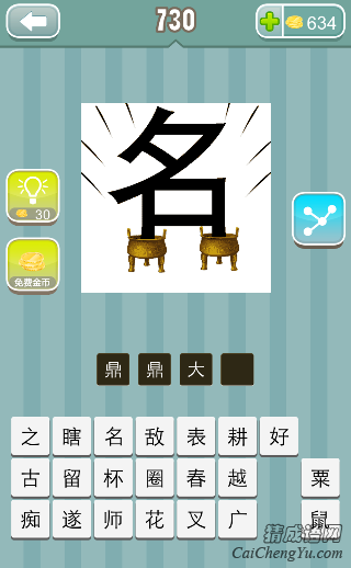 疯狂猜成语一个鼎的答案 疯狂猜成语答案