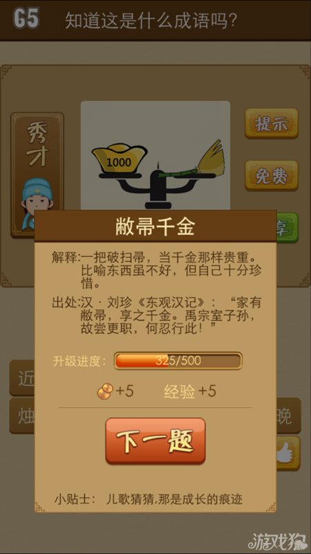 疯狂猜成语图片中,金子和扫帚是什么答案,对于这个图片,上面有一个金子,上面写着一千,还有一个扫帚,放在了称上,那么这是什么意思呢,一千斤等于扫帚么。下面来看看正确的答案吧。