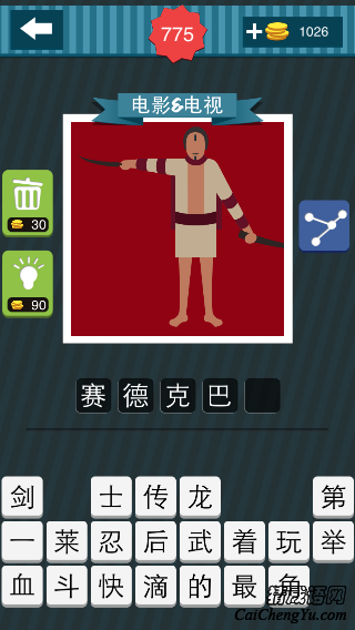 疯狂猜图有一关的图片中,一个穿着少数民族衣服的人伸着手拿着一把刀,答案是哪部电影或哪个电视节目?