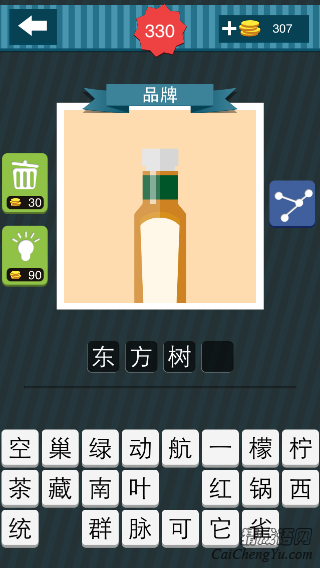 疯狂猜图游戏中,一个瓶子 盖子是白色的 下面是绿色 里面色褐色的,答案是什么?