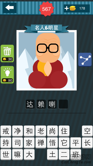 疯狂猜图游戏中,一个戴着眼镜 穿着红色衣服的和尚打坐 后面是几座白色的山,答案是什么?