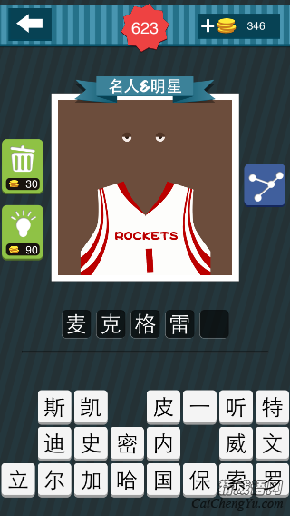 疯狂猜图有一关的图片中,一件白色的1号球衣两只眼睛,ROCKETS,火箭队,答案是哪个名人明星?
