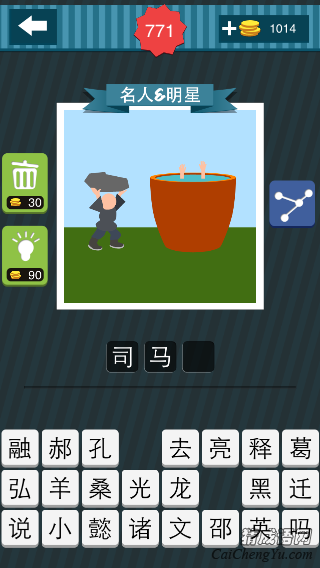 疯狂猜图有一关的图片中,一个小孩拿着石头砸向水缸,答案是哪个名人明星?
