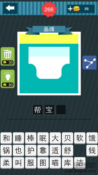 疯狂猜图游戏中,青蓝色背景 一条小孩的白色裤子,答案是什么?
