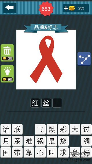 疯狂猜图游戏中,一条交叉的红色带子,答案是什么?