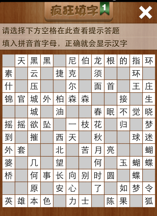 疯狂填字1游戏 第139关答案是什么?疯狂填字一图片答案。