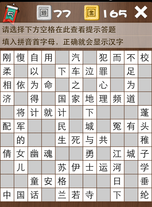 疯狂填字5游戏 第77关答案是什么?疯狂填字答案图片。