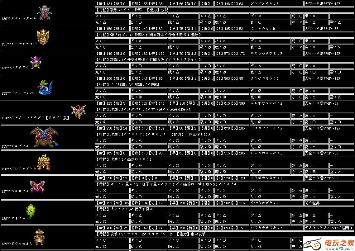 nds勇者斗恶龙4全怪物图鉴及怪物资料一览 K73电玩之家