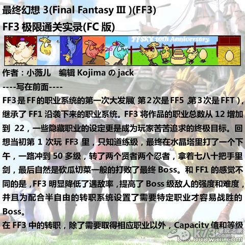 最终幻想3攻略 《最终幻想3》游戏库:点击进入中文名称:最终幻想3英文名称:Final Fantasy III制作厂商:Square Enix