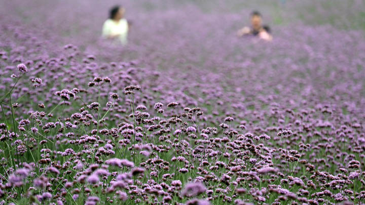 柳叶马鞭草成了一片紫色的花海