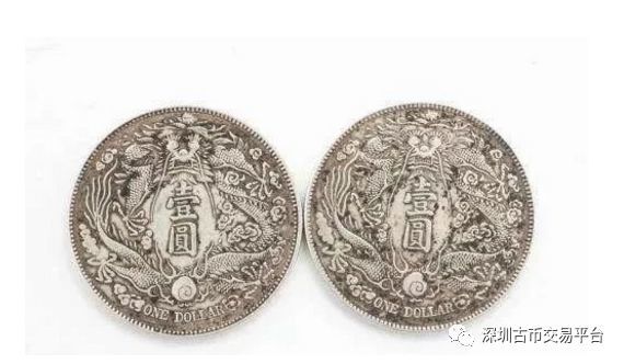 钱币藏品赏析 这两枚钱币均为宣统三年大清银币,钱币正面环珠圈,珠圈内部印制“大清银币”四个大字,外珠圈内上环满文、下环汉文“宣统三年”字样,两侧使用菊花纹进行装饰;钱背印“壹圆”面值,外围是一条威武的长须龙,腾云驾雾,体态神俊,威风凛凛,十分具有皇家气