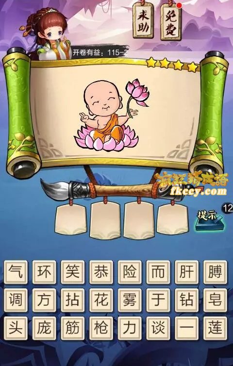 疯狂猜成语3和尚坐在荷花手里拿着花笑打一成语是什么