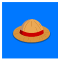 - 疯狂猜图蓝色背景上面一个草帽草帽上面有红色