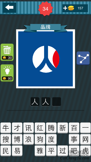 疯狂猜图游戏中,蓝色背景上一个人字 旁边一块红色的品牌,答案是什么?