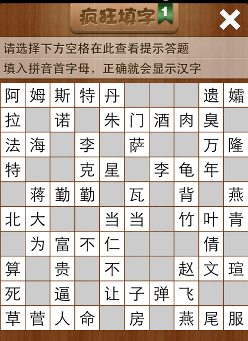 疯狂填字1游戏 第71关答案是什么?疯狂填字一图片答案。
